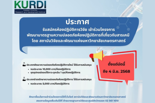 ประกาศ มก.กพส. เรื่อง รายชื่อผู้ได้รับทุนสนับสนุนวิจัยวิทยาเขตกำแพงแสน ประจำปี พ.ศ. 2568 Continue reading