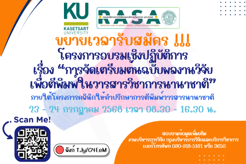 [ขยายเวลารับสมัคร] โครงการอบรมเชิงปฏิบัติการ เรื่อง "การจัดเตรียมต้นฉบับผลงานวิจัยเพื่อตีพิมพ์ในวารสารวิชาการนานาชาติ" ภายใต้คลินิกให้คำปรึกษาการตีพิมพ์วารสารนานาชาติ ประจำปีงบประมาณ พ.ศ. 2568 Continue reading